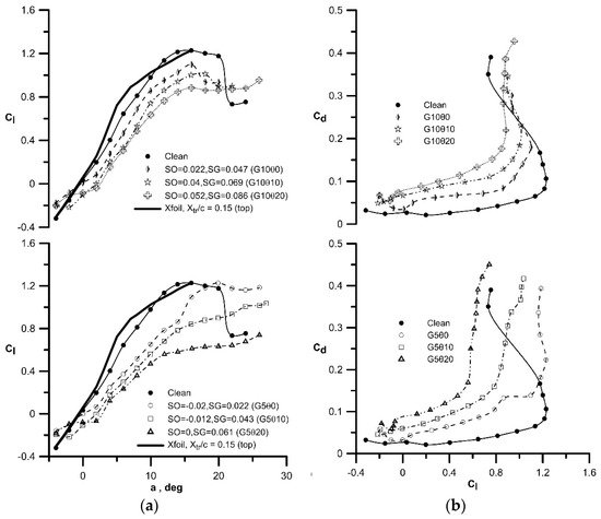 - Traub, L.W.; Freienmuth, E.O. Effect of streamwise attachment gap on aerodynamic characteristics of gurney flaps. J. Aircr. 2011, 48, 348–352. [Google Scholar] [CrossRef]