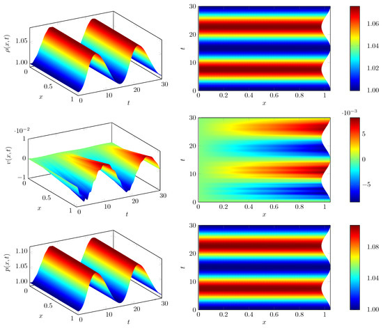 starting from a given initial state . Due to the ALE formulation Equation (56) of the fluid equations, the fast components are given by the products of the cell averages of the conservative fluid variables with the corresponding cell volumes. By the construction just described, the slow components are given by and the coupling between these subsystems now takes the form and , which shows that the evolution of slow components is actually independent of the fast ones in this case.
