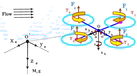 The dynamic model of the quadrotor can be defined [,] according to the following relations: