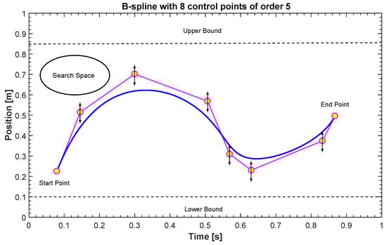 The reason for using the B-spline is that unlike the global property of the Bezier curve, it has the local property []. Furthermore, the order of the B-spline is very important to generate feasible trajectories that fulfill constraints and obtain trajectory continuity and smoothness. To do so, we use fourth-order B-splines (quadratic) and fifth-order B-splines (quintic) in the considered scenarios.