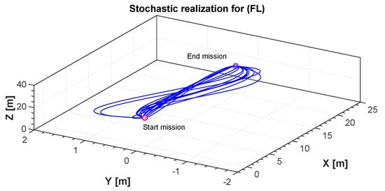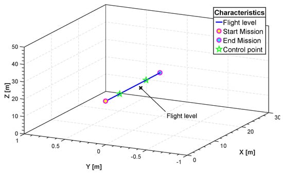 According to the aeronautical literature [], the flight level (FL) is expressed as a vertical altitude with zero roll, pitch and yaw at sea level pressure. For this scenario a fourth-order B-spline with four control points is considered. More details on the FL can be found in Section 4.