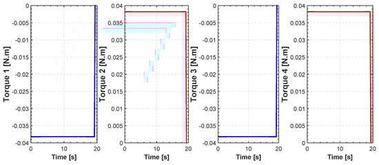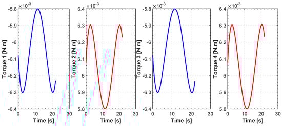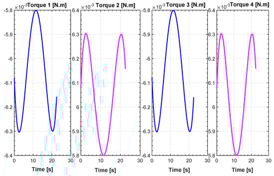The input torques can be obtained by the actuators of the quadrotor. Exploiting Equation (20), we can define the fitness function and boundary conditions in our model by evaluating , for and its time derivatives. We refer to as the trajectory evolution.