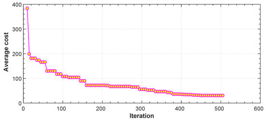 Average cost function vs. iteration for CMS.