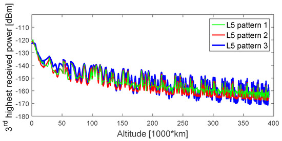 Third-highest received power level of GPS L1 signals, during the considered MTO, for a 0 dBi receiver gain pattern.