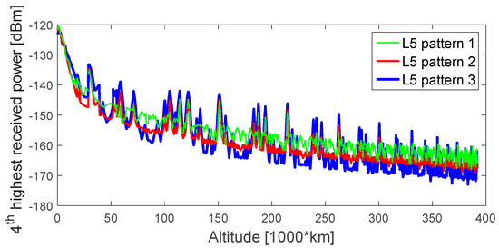 Fourth-highest received power level of GPS L1 signals, during the considered MTO, for a 0 dBi receiver gain pattern.