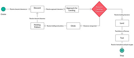 Statecharts constitute a visual formalism for describing states and transitions in a modular fashion [17]. A simple state diagram for a normal landing scenario of an aircraft can be seen in Figure 1.