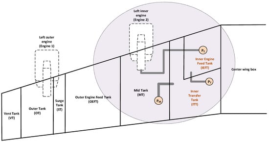 The case study scenario considers fuel transfer and supply operations in the left wing. There are two fuel transfers: one from the MT to the ITT and the other from the ITT to IEFT. The engine supply operation is to provide left inner engine 2 with fuel during fuel burn sequencing (aircraft operation). The fuel is steadily transferred from the MT to the ITT as well as from the ITT to IEFT during normal aircraft operation. The IEFT must be as full as possible at all times to avoid starvation and guarantee best feeding to engine 2.