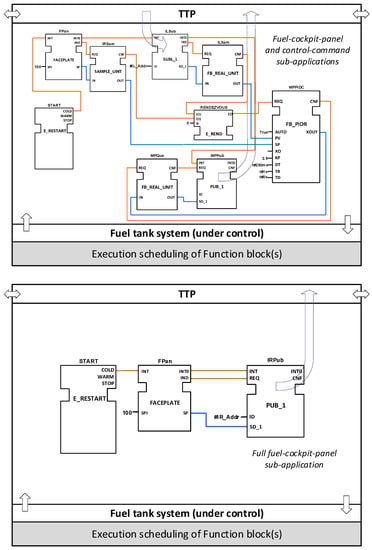 - Insaurralde, C.C.; Seminario, M.A.; Jimenez, J.F.; Giron-Sierra, J.M. FB-Oriented Approach to Model an Aircraft Distributed Control Architecture—Avionics Fuel Systems. In Automation Technology in Practice International; Oldenbourg Industrieverlag: München, Germany, 2008; Issue 1, pp. 33–42. [Google Scholar]