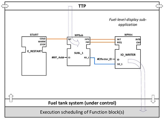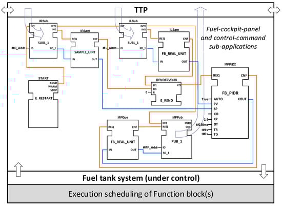 The IEC-61499 standard has long been used to develop control applications of Distributed Time-Critical Systems (DTCSs) in industrial automation. Early considerations of the IEC-61499 standard for avionics include DTCSs such as an aircraft fuel management system [,]. A later discussion on the use of the above modelling standard from industrial automation for aerospace has also been presented by the author of this paper [].