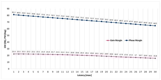 Figure 22 shows the time response (time domain) for a latency of 3.5 ms and 20.2 ms (the latency range provided by the DAA execution). The step input is normalized to a value of 1. There is a slight change on the overshoot (increment) as the GM and PM are reduced.