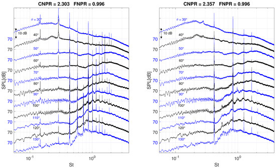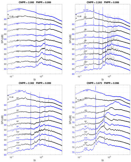 Following the manufacturer’s advise, acoustic measurements, without the protective grid, have been repeated and extended for lower and higher Mach numbers, as indicated in Table 4. The last acoustic measurement campaign has been executed using the Nozzle Set 2, for the sake of verifying the experimental repeatability and acoustic spectra similarity.