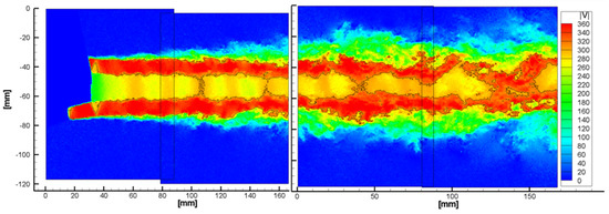 The final Field Of View (FOV) is shown in Figure 16. It has a total extension of 10.5× 4 (252 × 96 mm) with a resolution of 18 pixels/mm. A parametric study was carried out to choose the optimum separation time and seeding density for each case. The final separation times for each case are summarized in Table 4.