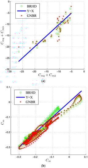 In addition, the scatterograms plotted for the test subsets of and are shown in Figure 18a,b. The BRHD technique yields less scattering.