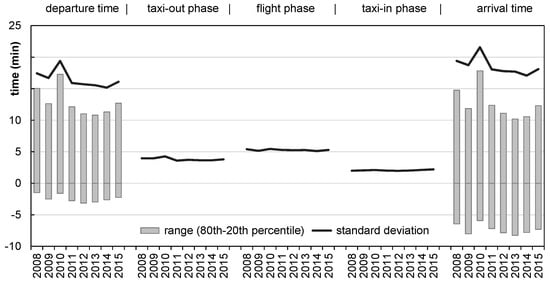 Variability of ground and flight phases on intra-European flights, 2008–2015 (cf. [10]).
