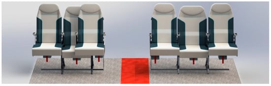 Bachmat et al. [37] demonstrate with an analytical approach that boarding efficiency is linked to the aircraft interior design (seat pitch and passengers per row). Chung [38] and Schultz et al. [39] address the aircraft seating layout and indicate that alternative designs could significantly reduce the boarding time for both single- and twin-aisle configuration. Fuchte [40] addresses aircraft design and, in particular, the impact of aircraft cabin modifications with regard to the boarding efficiency. Schmidt et al. [41,42] evaluate novel aircraft layout configurations and seating concepts for single- and twin-aisle aircraft with 180–300 seats. The innovative approach to dynamically changing the cabin infrastructure through a Side-Slip Seat is evaluated by Schultz [43].