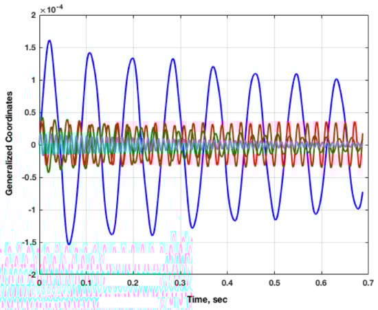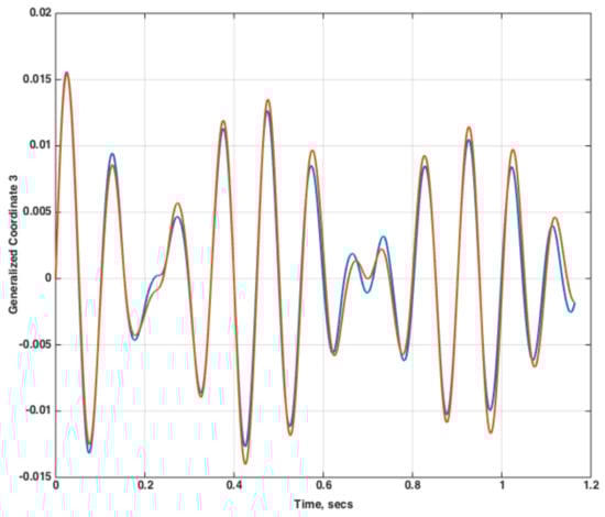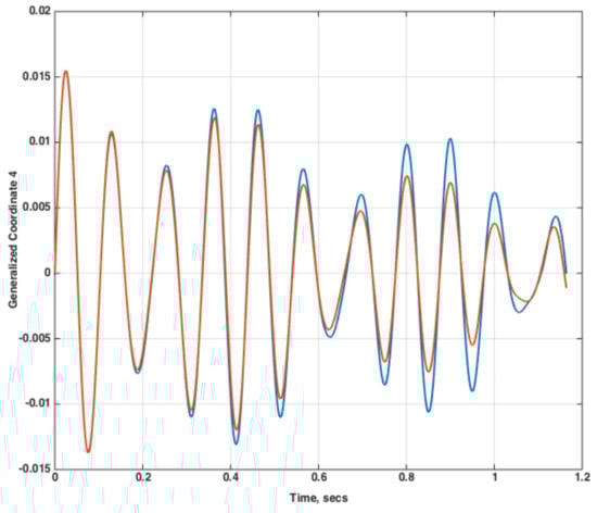 Clearly, the nonlinear unsteady aerodynamic responses of a flexible vehicle comprise a multi-input/multi-output (MIMO) system with respect to the modal inputs and generalized aerodynamic outputs. In the situation where the goal is the simultaneous excitation of such a MIMO system, system identification techniques [,,] indicate that the input excitations must be properly defined in order to generate stable and accurate input/output models of the system. A critical requirement is that these input excitations be different, mathematically, from each other. If identical excitation inputs are applied simultaneously, the task of separating the various contributions of each input becomes nearly impossible. This effect makes it practically impossible for a system identification algorithm to extract the individual impulse responses for each input/output pair. It is essential that the individual impulse responses for each input/output pair be properly identified so that an accurate model can be generated.