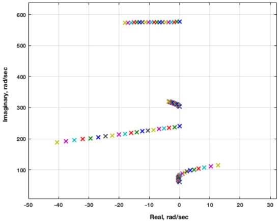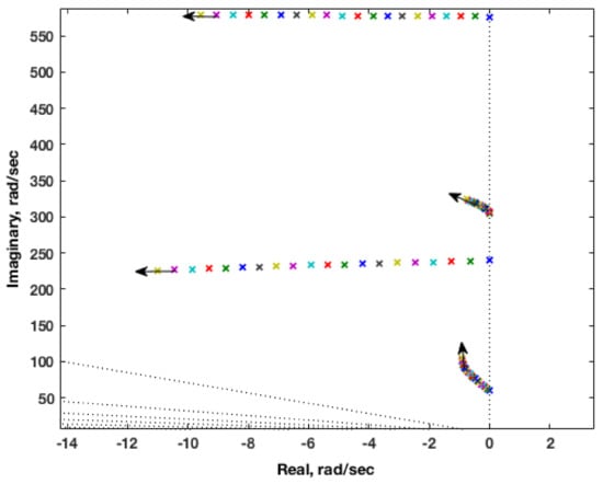 Viscous ROM root locus plot at M = 1.141.
