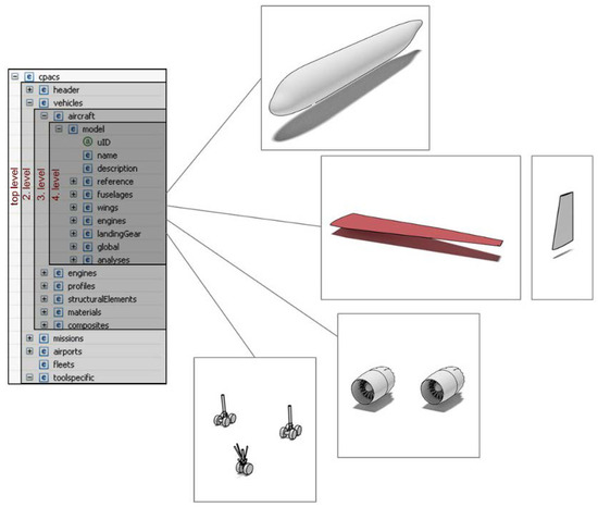 Thanks to its hierarchical structure, CPACS is capable of hosting the entire aircraft geometry, as well as additional design information relating to flight missions, airports, propulsion systems and aerodynamic datasets; see Figure 3.