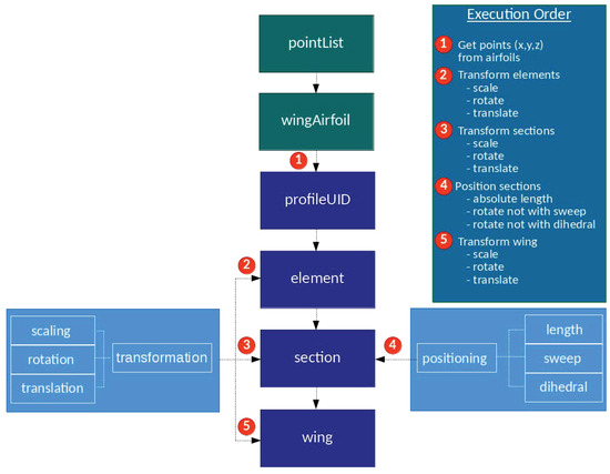 Figure 4. Adapted from CPACS documentation [9]; schema for the construction of an aircraft wing from its XML file definition.