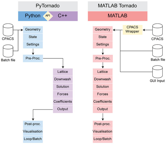 Figure 8 shows the computational workflows. PyTornado, in its present state of completeness, is already an improvement over the MATLAB implementation both in performance and flexibility. The seamless integration of CPACS is a significant merit, leaving it open for extension and coupling with other tools, e.g., for structural analysis. PyTornado is currently still under development for further validations, with more features to be imported from CPACS files.