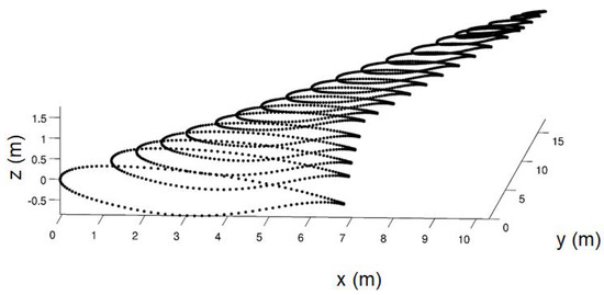 The aircraft configuration defined in a CPACS XML file is converted into a Sumo [24] native .smx file by the CPACS2SUMO Python converter without manual intervention. This conversion is relatively straightforward since both formats define aircraft in a similar way. Fuselage and wings are created from a gathering of sections placed in a certain order. Each section is defined by a 2D profile written as a list of points. Then, these profiles can be scaled, rotated and translated to form the desired shape. Figure 10 shows how Sumo represents a wing as a stack of airfoils. The 3D wing surface is lofted from the sections by Bézier or B-spline surfaces.