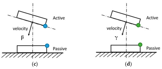 Considering a fixed “Passive” part and the other mobile “Active” part approaching at 3 cm/s similarly to the Soyuz when close (<10 m) to the International Space Station (ISS) [21], four test cases have been identified (see Figure 6):