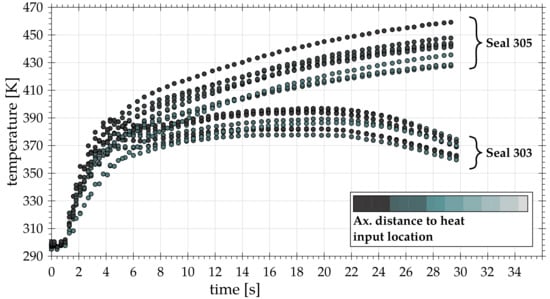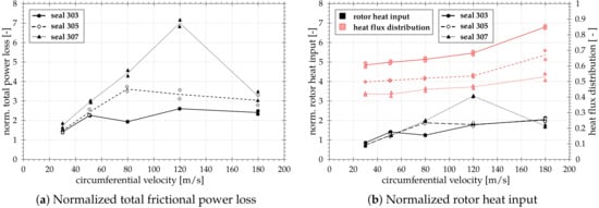 - For two seals, a saturation level of the heat inputs is established at high circumferential speeds. An air-riding effect might be the cause for this saturation.