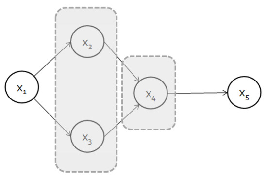 Graph G contains all of the qualitative information about the relationships between the variables, regardless of the probability values assigned to them. Additionally, the probabilities in P contain quantitative information, i.e., they complement the qualitative properties revealed by the graphical structure [54,86,87]. Figure 12 gives a basic example of a BN, where X2 and X3 are parent nodes of X4 (child node for X2 and X3). The probability distribution of X4 depends exclusively on the value of its parent variables (X2 and X3), i.e., X4 is conditionally independent of X1 given knowledge of X2 and X3.