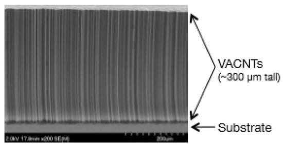 Vertically aligned Carbon Nanotube “Forest” under an electron microscope, forest height 300 μm [9].