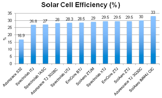 - Spectrolab. NeXt Triple Junction (XTJ) Solar Cell. 2010. Available online: http://www.spectrolab.com/DataSheets/cells/PV%20XTJ%20Cell%205-20-10.pdf (accessed on 4 April 2018).