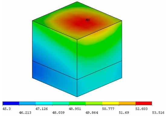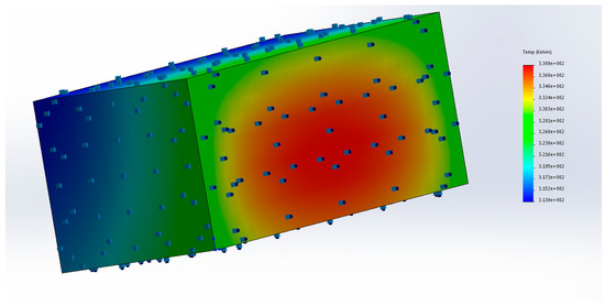To validate first-principle results incorporating a thermal load due to heat dissipation, a study was developed to replicate each respective hot and cold case in SolidWorks thermal solver. The finalized hot-case analysis mirrored the initial hot analysis, with the addition of a 0.7995 W applied to the “top face” to replicate a worst-case heat transfer scenario [9].