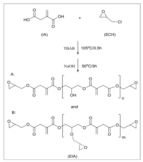 Synthetic route and chemical structures of itaconic-acid-based epoxy resin (EIA).