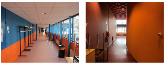 The corridor as shown in the right image of Figure 8 was also used as a test environment for the corridor-following task. In many studies, a very structured and straight repetitive corridor is used. In contrast, this curved corridor with little texture misses important features such as vertical straight lines along the wall, as was believed to be a challenge.