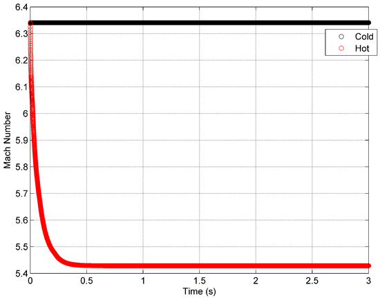A wing at room temperature is analysed as a benchmark case. The linear flutter speed analysis gives a velocity of 2157 ms [43]. This is shown in Figure 6 as the cold data points, which of course are independent of time. The effect of heat can be seen in Figure 6 as the hot data points. The hot data points show how the instantaneous flutter speed changes as the heat is applied to the simple wing model when only linear aerodynamics is considered. Application of heat has the effect of drastically reducing stiffness and hence flutter speed. The extra stability gained by the increase in the lifting area due to thermal expansion is negligible compared to the loss in stiffness. Once the wing reaches thermal equilibrium, the stability boundary remains constant.