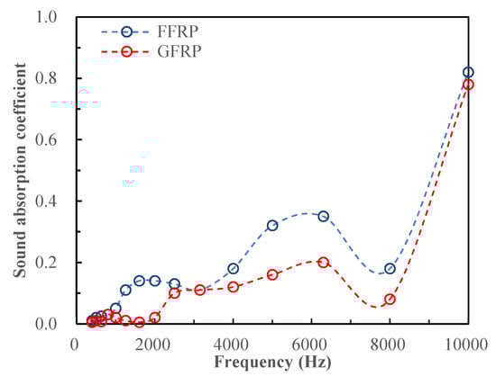 The experimental sound absorption coefficients of FFRC and GFRC with frequency.