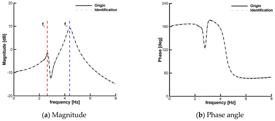 A SISO model is considered in this exploratory work. The pitch degree of freedom is taken as the measured output, whereas the plunge is assumed unmeasurable. The transfer function, , between the control effector and the pitch response is identified using the prediction error minimization algorithm available in MATLAB. A preliminary study was carried out to ensure independence from the number of zeros and poles used in constructing the transfer function. It was found that six zeros and seven poles, which are listed in Table 2, provide a good approximation of the aeroelastic system composed of 12 states in total. The real part of all poles is negative and the resulting transfer function is therefore stable. As confirmed in Figure 9, the identified transfer function (with six zeros and seven poles) is identical to the transfer function that relates the Laplace transform of the system output to the Laplace transform of the (chirp) input.