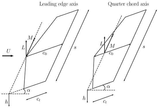 Tapered wing with pitch axis at the leading edge and quarter chord.