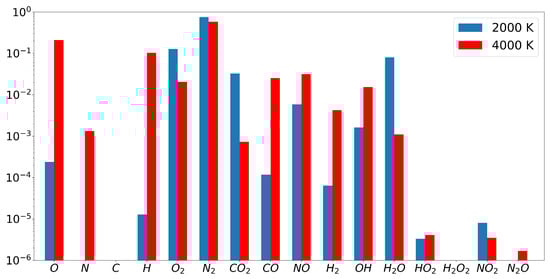 Molar fractions of the components for temperatures of 2000 K and 4000 K.