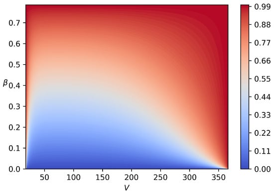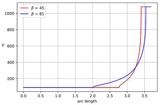 we obtain pair (). It should be noted that Equation (12) is integrated only once for the given problem, yet (13) is solved for each value of V in each mesh node.