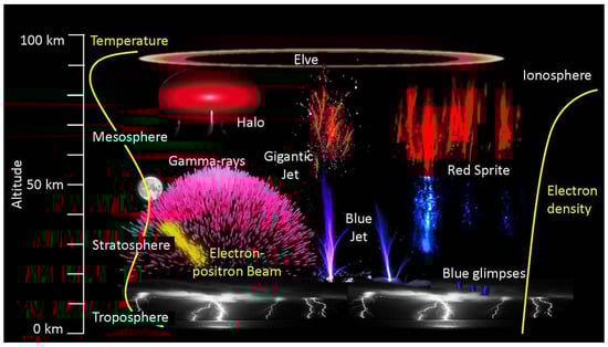 - Upper Atmosphere Phenomena Caused by Thunderstorms (NASA). Available online: https://www.nasa.gov/image-feature/upper-atmosphere-phenomena-caused-by-thunderstorms (accessed on 1 August 2018).