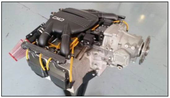 The injection system (direct injection) was made by two electrical injectors, placed on the aspiration manifold of each cylinder, and by two ignitions. The cylinders were located opposite horizontally, and closed in one block in which the camshaft managed the four intake and exhaust valves for each cylinder. The CMD engine is shown in Figure 2 and the main features are listed in Table 1.