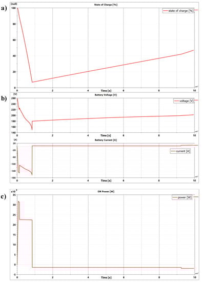 The battery capacity for the training profile was defined considering the maximum voltage that the EM can accept from the battery, namely 500 V. Therefore, it assumes a value of almost 16 Ah.