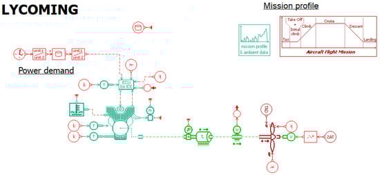 In order to perform the comparison, a model of the ICE Lycoming IO-360 (baseline propulsion system) was constructed. The model of the baseline configuration is shown in Figure 18.