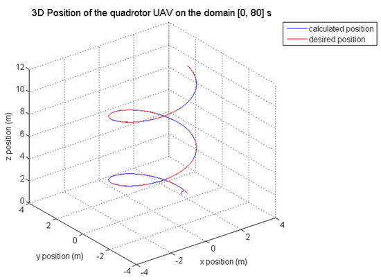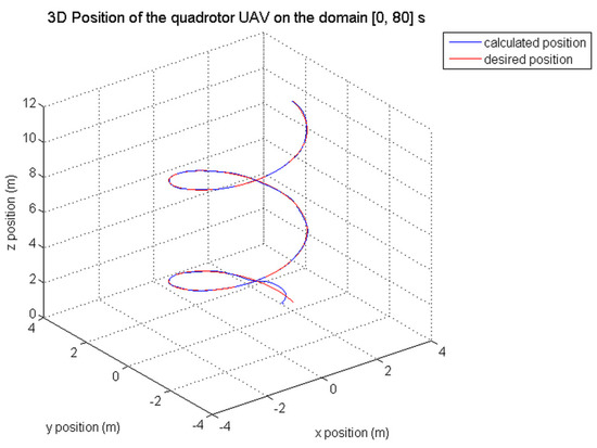 The 3D position of the quadrotor UAV obtained by the PTCM in the time interval [0, 80] s.