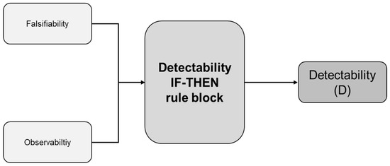 At this step, as for the occurrence index, specific IF-THEN FAM inference rules have to be adopted to integrate the two coefficients (falsifiability and observability) and gather a systematic assessment of the detectability index (see Figure 2).