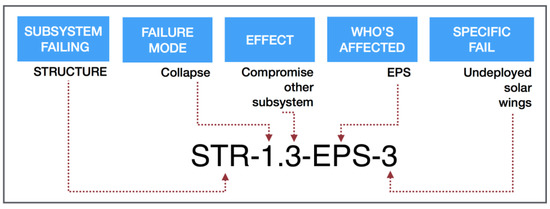 In this context, considering the current lack in literature of a standard labeling system, this paper presents a coding system specifically developed to deal with the need of a CubeSat environment. The system has been developed to ease the exchange of information between different researchers and provide a formal and unequivocal representation of the knowledge relevant for the analysis. The coding system is developed through a 5-parts alphanumeric code, which synthetically relates the failure modes to system components, as follows:
