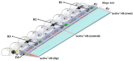 To enable the transition of the Multifunctional Twistable trailing-edge concept from the reference (baseline) shape to the target ones (Mode A and B), three “active ribs” were defined along the span-wise direction: root, central and tip sections.