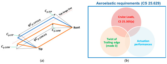 Design condition: (a) Pressure distribution on TE upper and lower surfaces for limit load condition; (b) Requirements simultaneously fulfilled to integrate a multifunctional TE at aircraft level.
