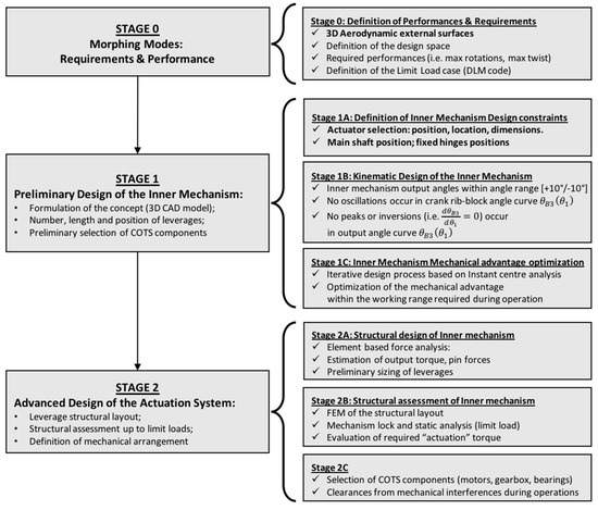 The design engineer must ensure that the proposed mechanism will not fail under operating conditions. At the beginning of the design process, a tentative linkage has to be synthesized with the principal goal to provide the kinematic performances required by morphing operations; in a second stage, the obtained mechanism is properly investigated from the structural standpoint. The position of all the links or elements in the mechanism has to be evaluated for each increment of input motion and compared with the expected kinematic performance enabling the transition of the airfoil from its baseline configuration to the target morphed one.