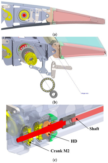 The Multifunctional Twistable TE concept is based on a thin-walled closed section beam layout (Figure 14). Three rotary actuators (placed in root, central and tip regions) transfer the torque to three independent actuation systems consisting of harmonic drive gear unit with a six-bar linkage.